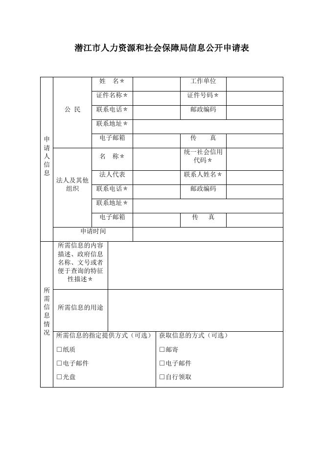 潜江市人力资源和社会保障局信息公开申请表.docx