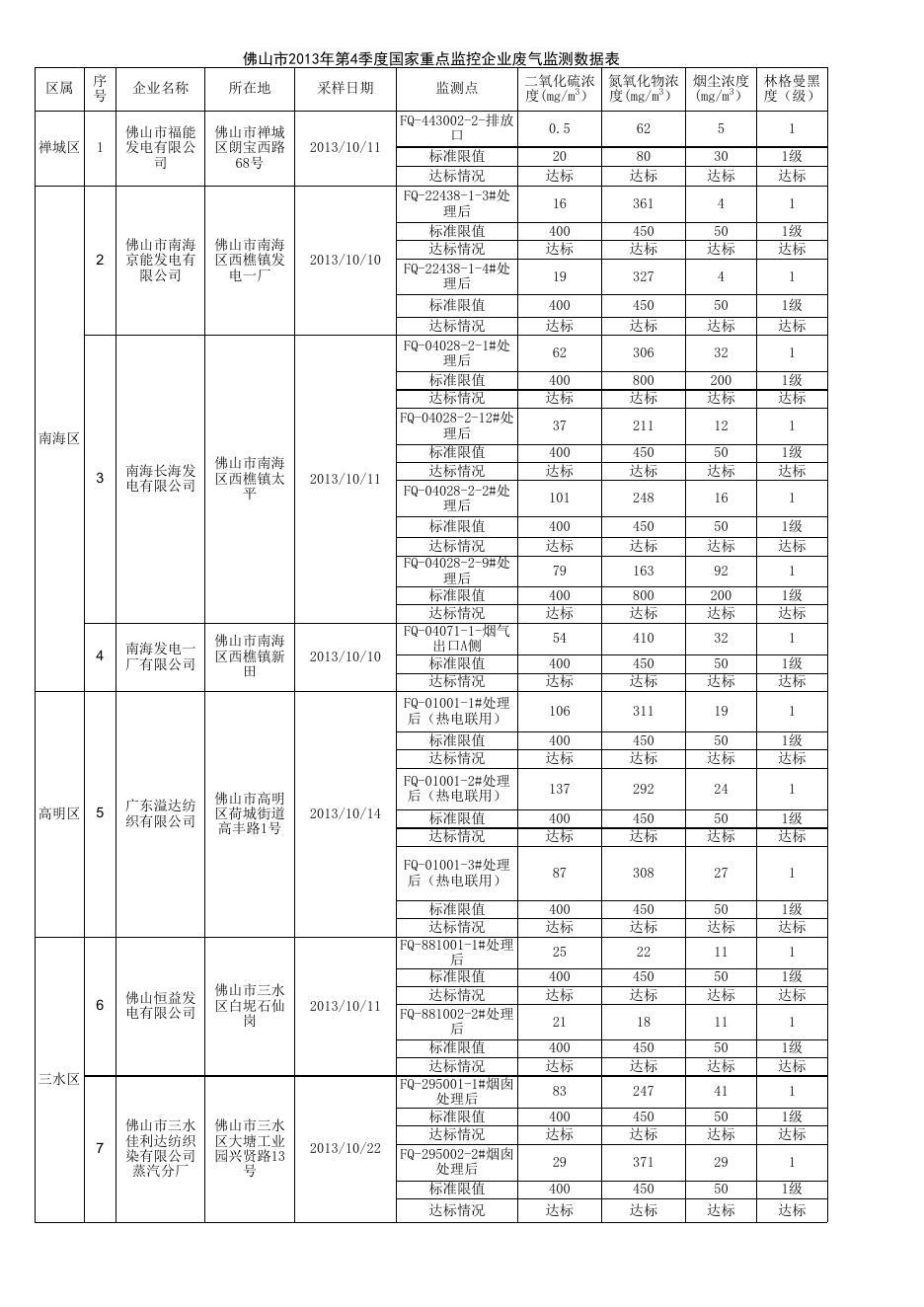2013年第4季度佛山市国控废气排放企业汇总表(公示).xls