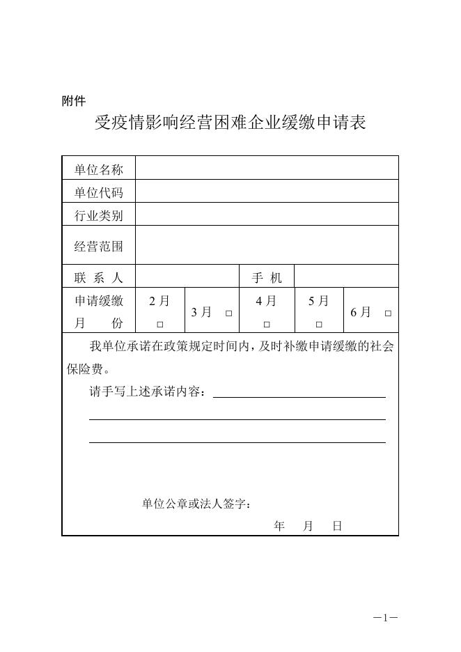 受疫情影响经营困难企业缓缴申请表.doc