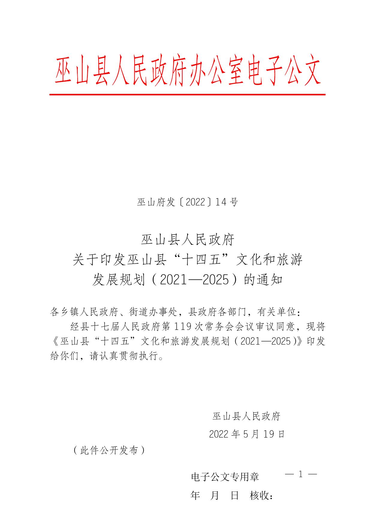 巫山县人民政府关于印发巫山县“十四五”文化和旅游发展规划(2021—2025)的通知.doc