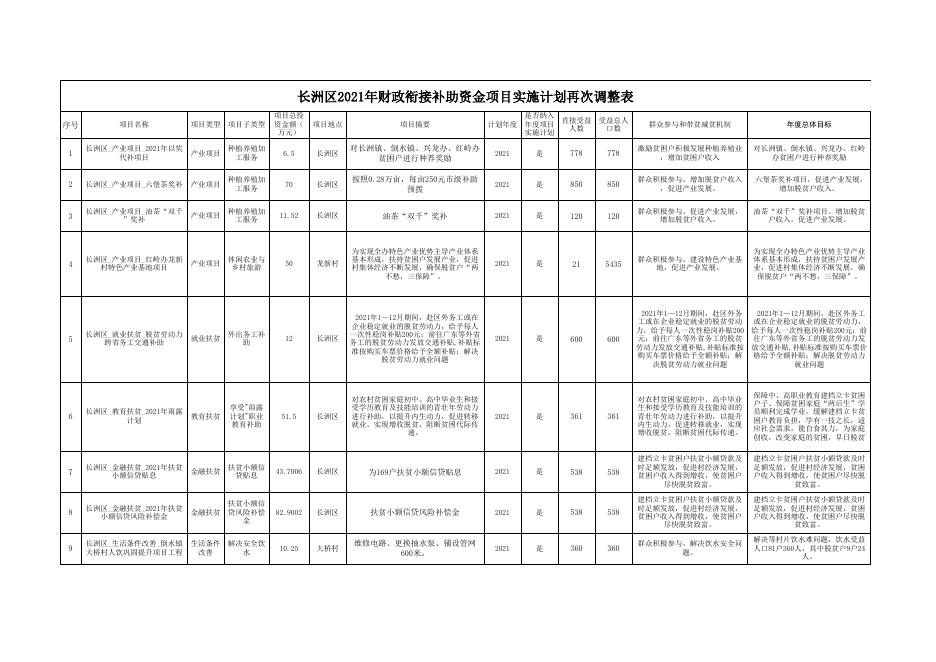 长洲区2021年财政衔接补助资金项目实施计划再次调整表.xlsx