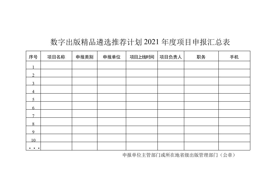 数字出版精品遴选推荐计划2021年度项目申报汇总表.doc