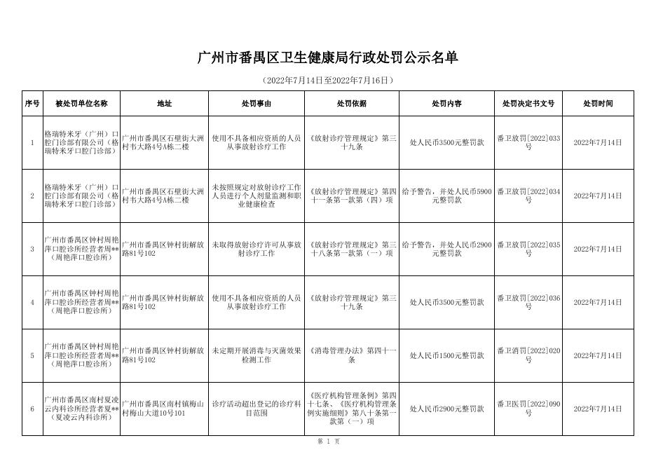 附件:广州市番禺区卫生健康局行政处罚公示名单(2022年7月14日至2022年7月16日).xlsx