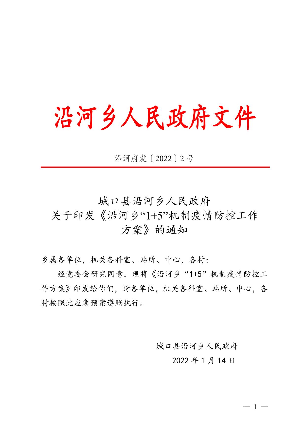 沿河府发〔2022〕2号关于印发《沿河乡“1+5”机制疫情防控工作方案》的通知.docx