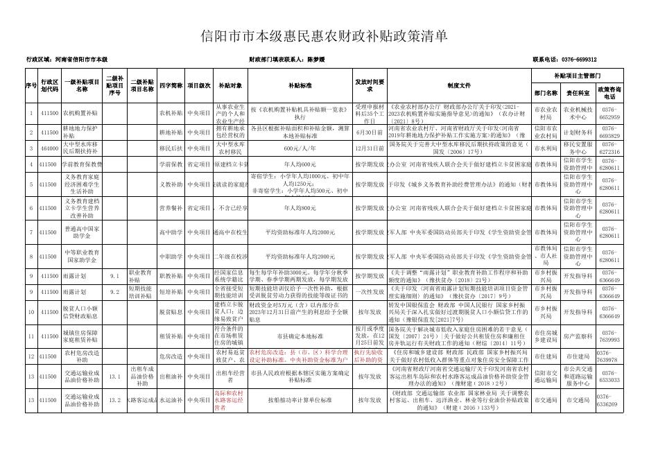 信阳市市本级惠民惠农财政补贴政策清单.xlsx