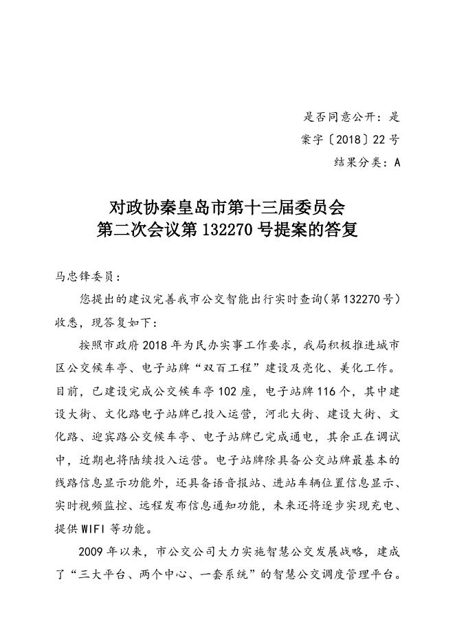 132270号提案答复 交通局 建议完善我市公交智能出行实时查询 马忠锋.doc