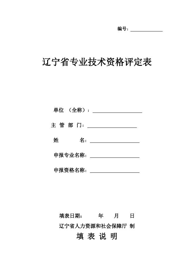 附件7 辽宁省专业技术资格评定表(模板).doc