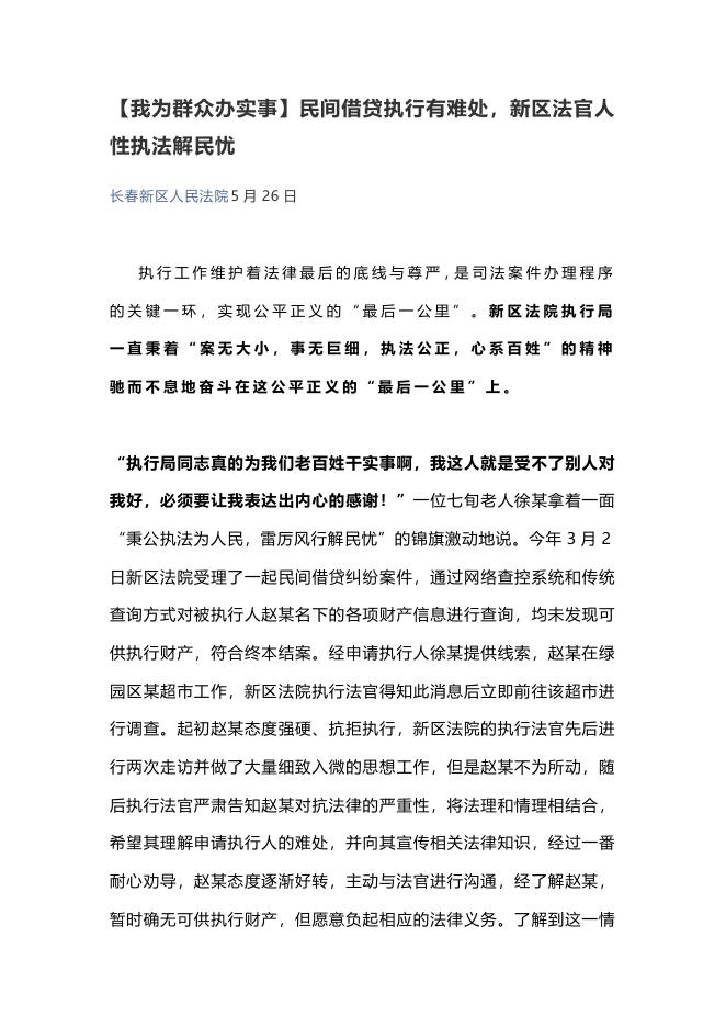 【我为群众办实事】民间借贷执行有难处,新区法官人性执法解民忧.docx