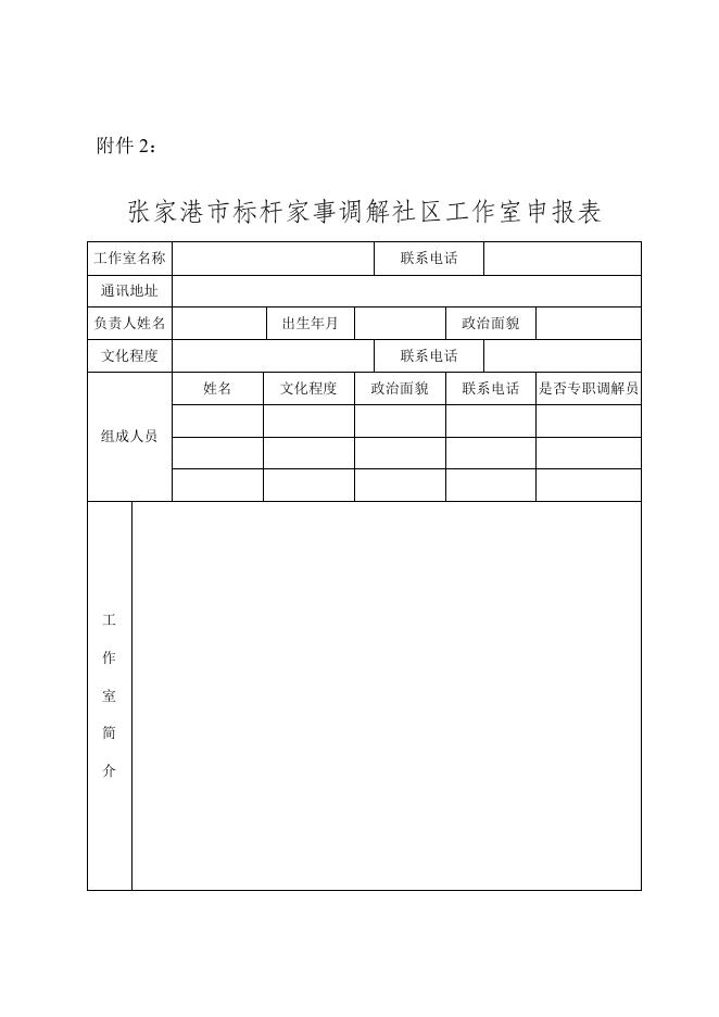 张司字〔2023〕21号 附件2:张家港市标杆家事调解社区工作室申报表.doc