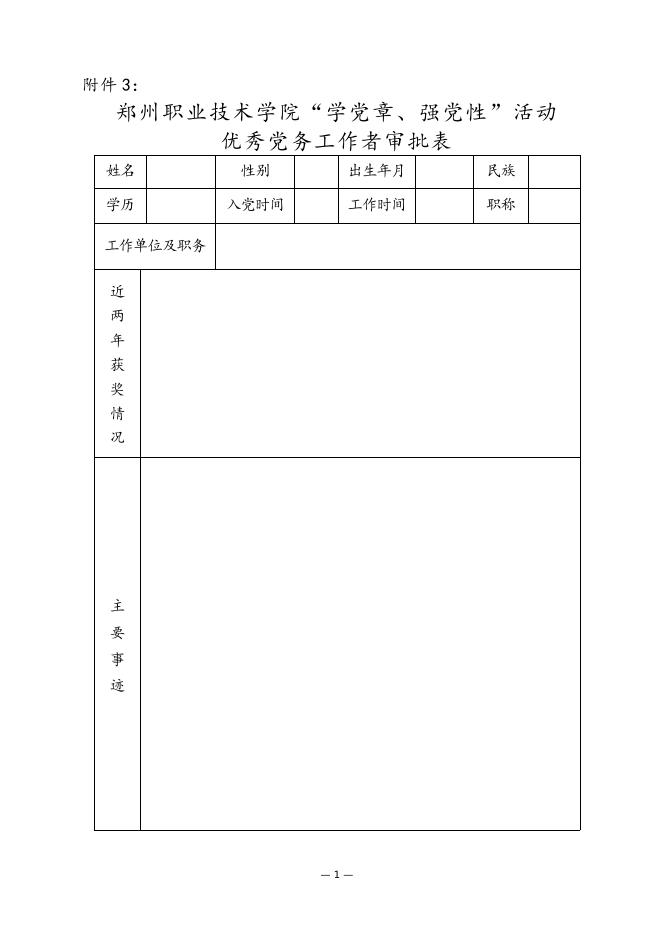 郑州职业技术学院“学党章、强党性”活动优秀党务工作者审批表.doc
