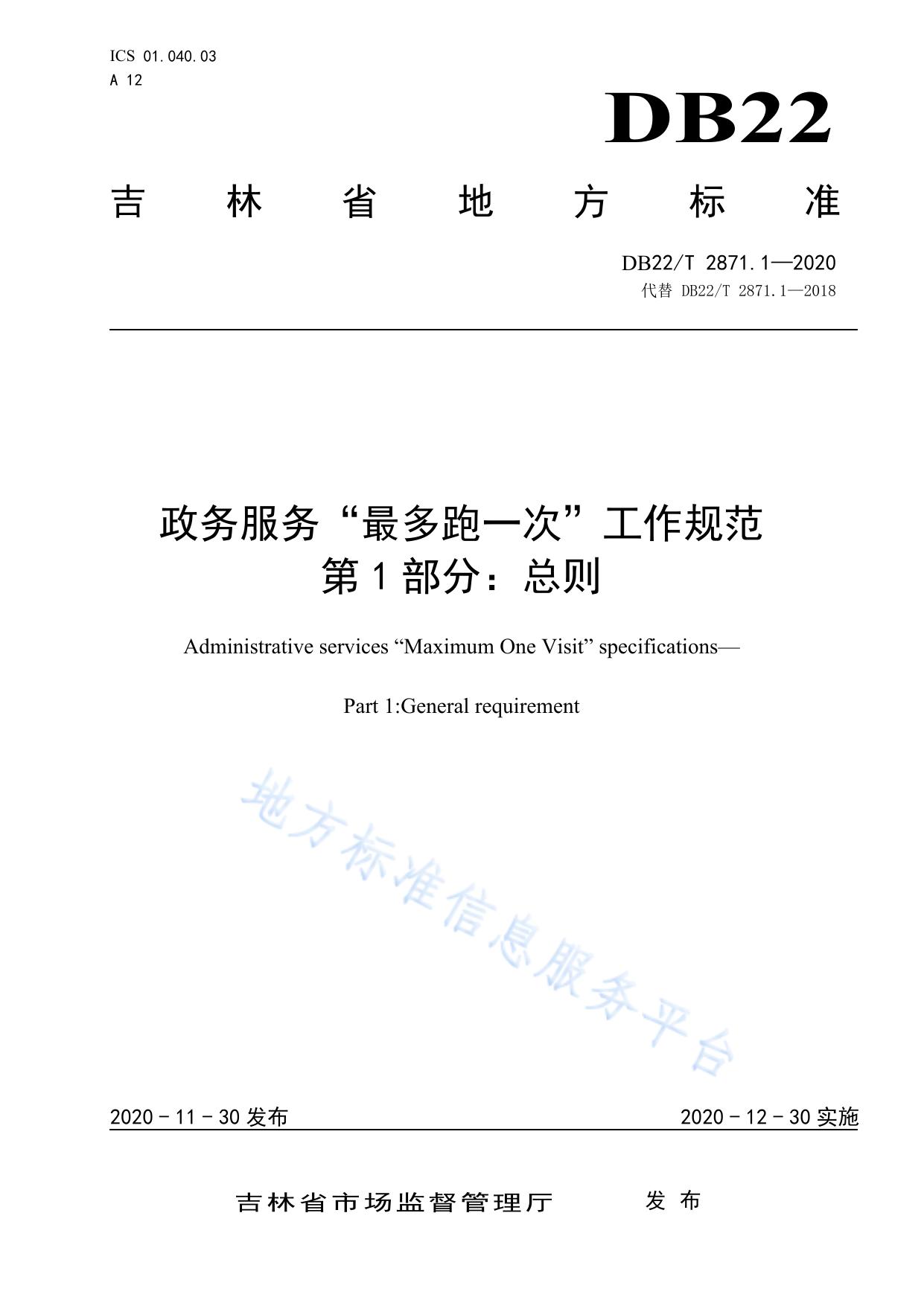 政务服务“最多跑一次”工作规范 第 1 部分:总则