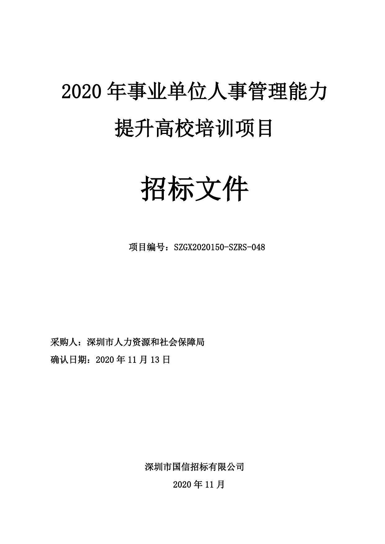 2020年事业单位人事管理能力提升高校培训项目招标文件.doc