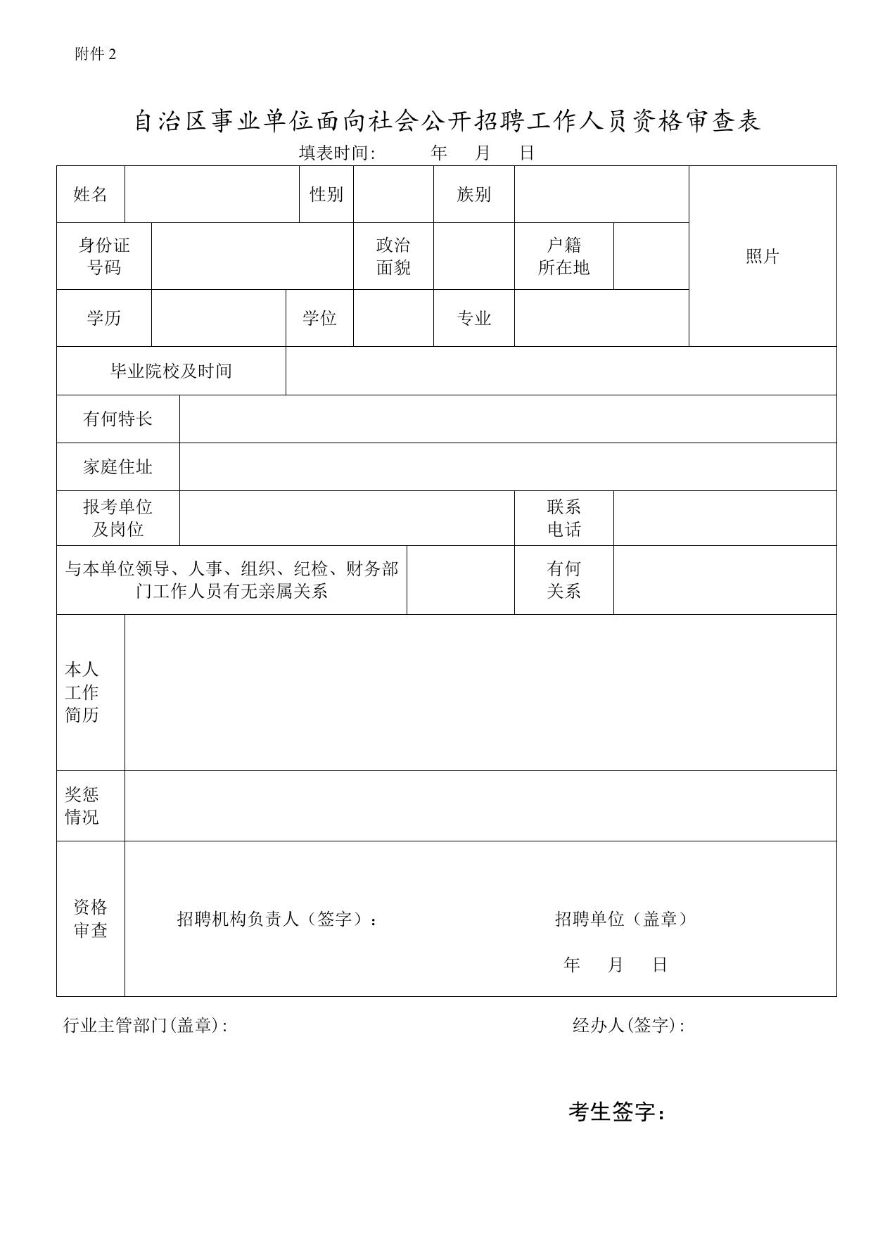 附件2:自治区事业单位面向社会公开招聘工作人员资格审查表.doc
