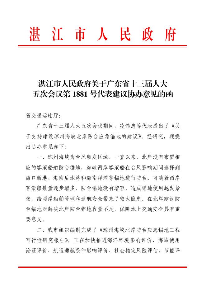 湛江市人民政府关于广东省十三届人大五次会议第1881号代表建议协办意见的函.pdf