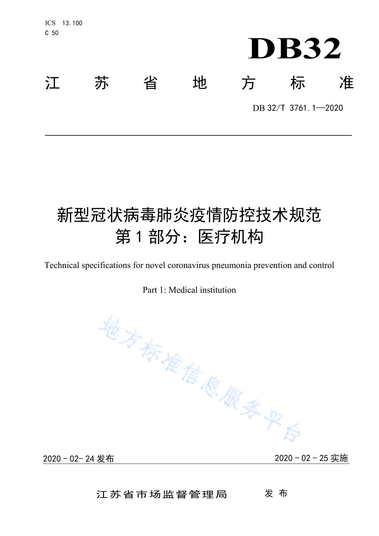 新型冠状病毒肺炎疫情防控技术规范 第1部分:医疗机构