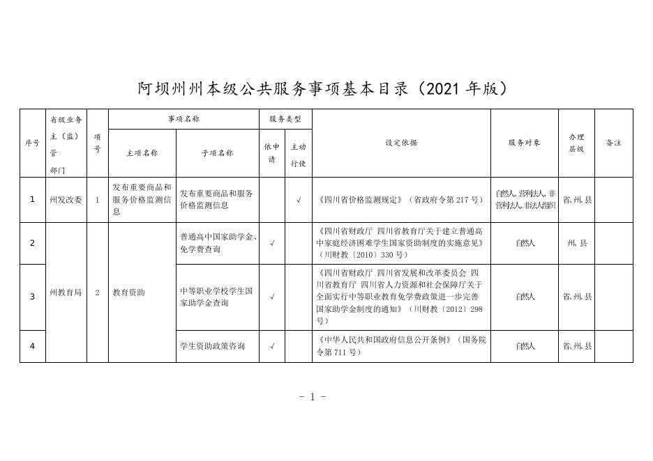 阿坝州州本级公共服务事项基本目录(2021年版).doc