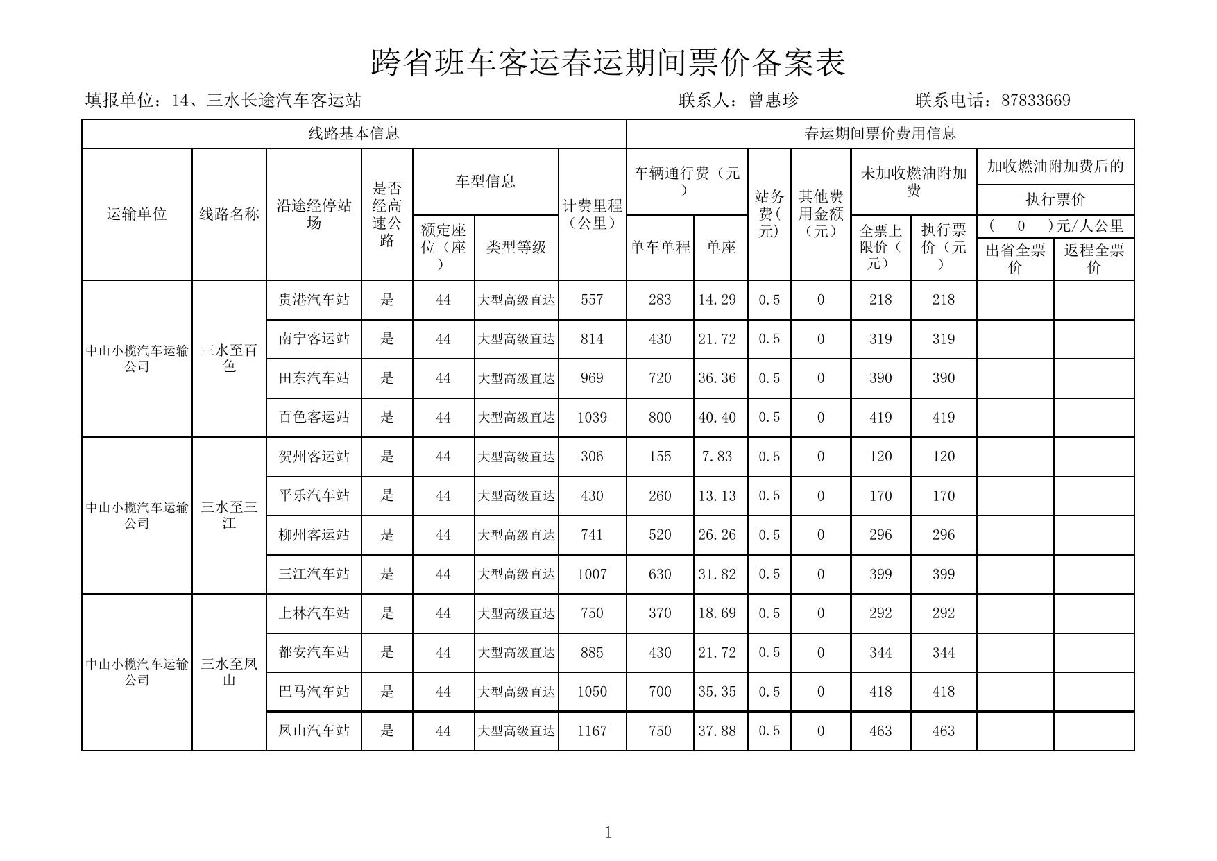 三水长途汽车客运站跨省站点票价表(跨省春运客运).xls
