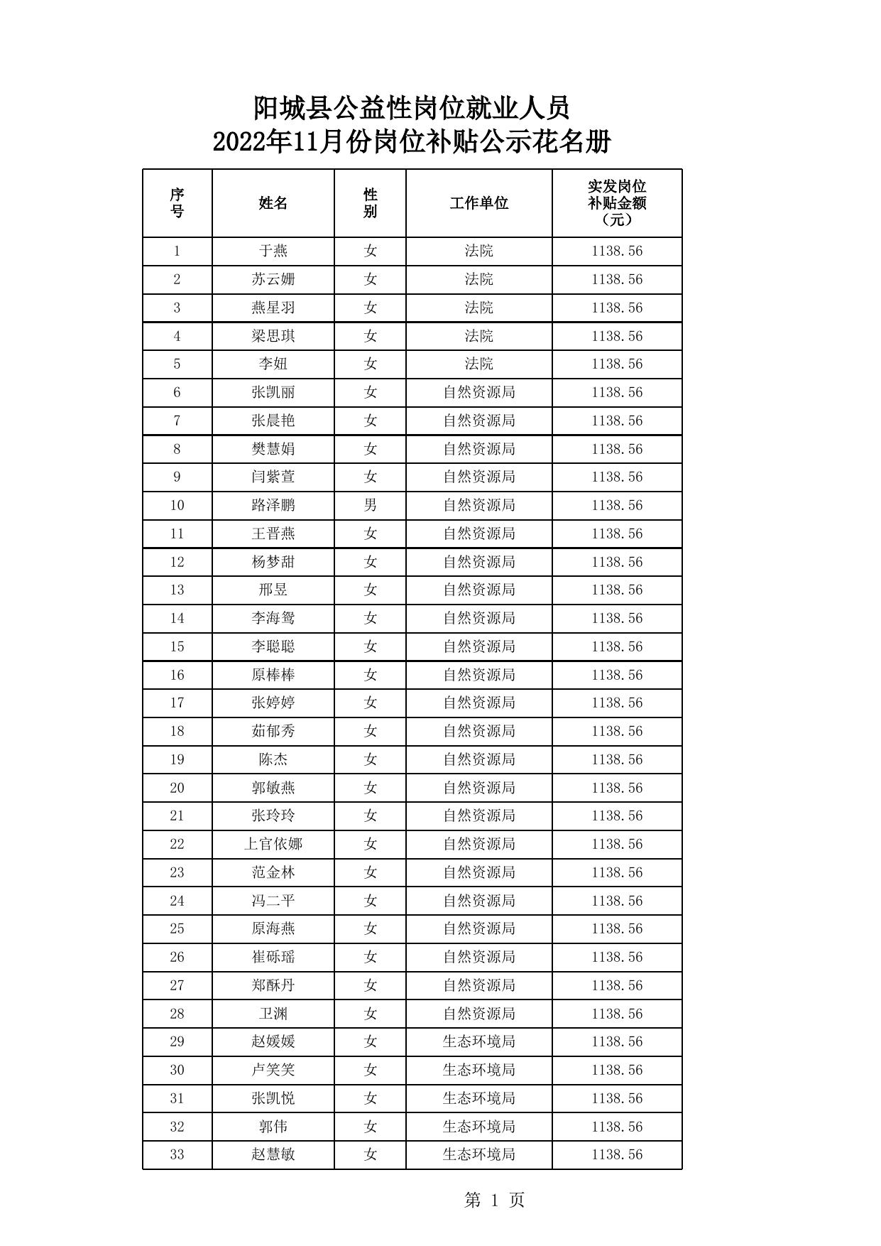阳城县人社局公益性岗位就业人员2022年11月岗位补贴公示花名册.xls