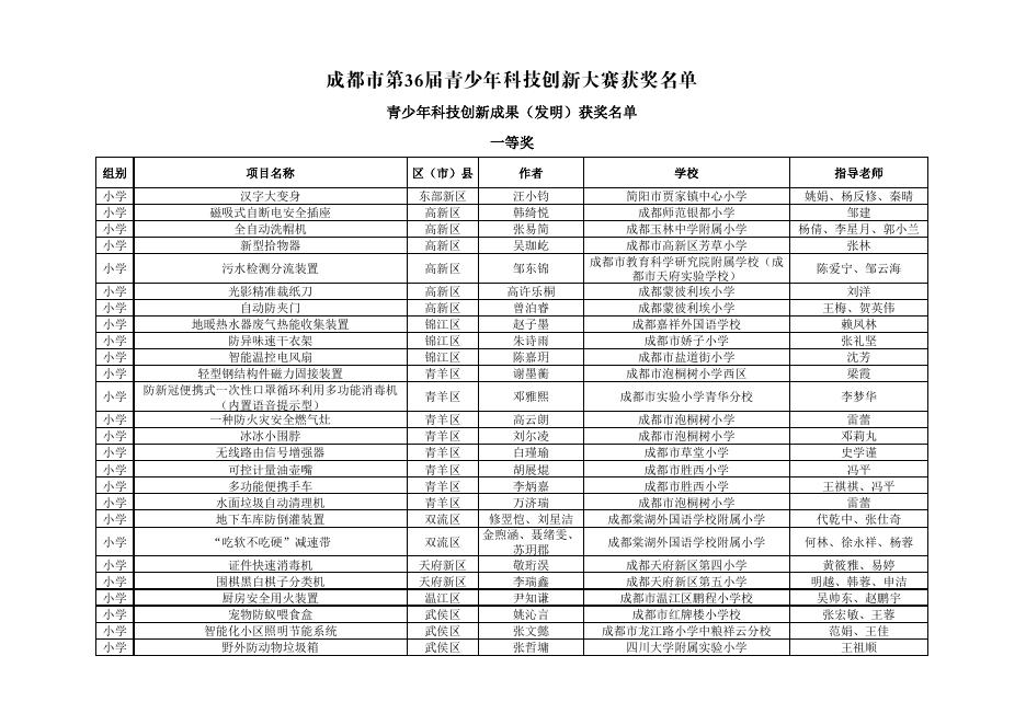 成都市第36届青少年科技创新大赛(青少年科技创新成果-发明)获奖名单.pdf