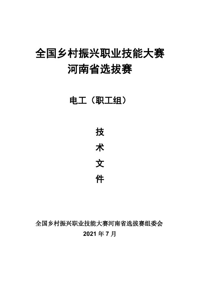 附件8-1全国乡村振兴职业技能大赛河南省选拔赛 电工项目 技术文件(职工组).doc