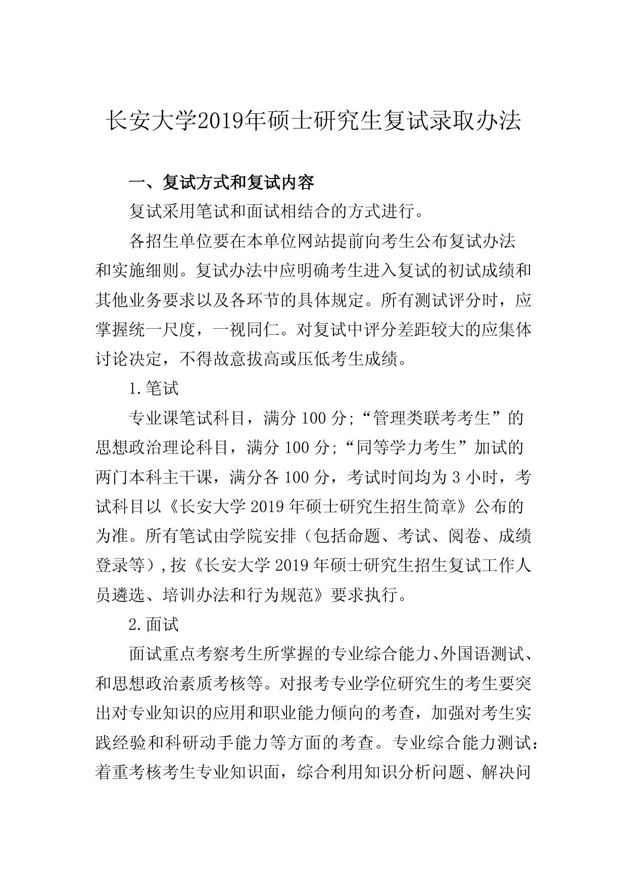 长安大学2019年硕士研究生复试录取办法.docx