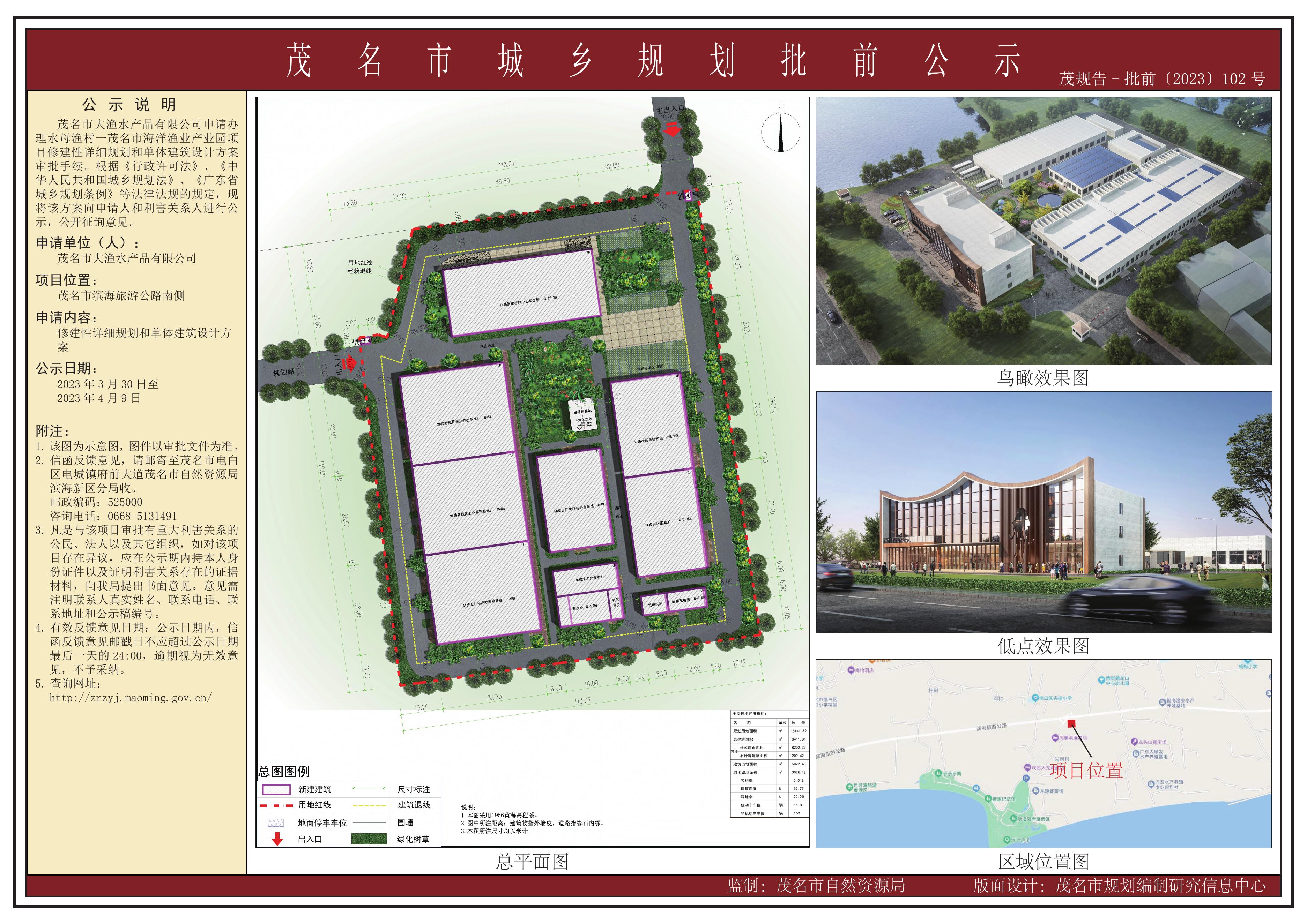 茂规告-批前﹝2023﹞102号 水母渔村一茂名市海洋渔业产业园项目修建性详细规划和单体建筑设计方案批前公示.pdf