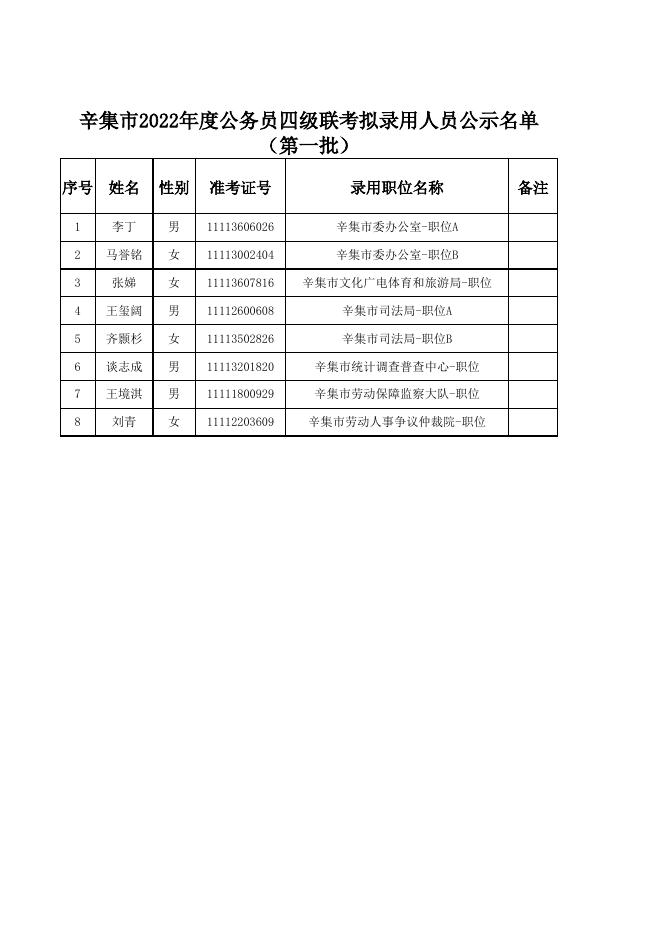辛集市2022年度公务员四级联考拟录用人员公示名单(第一批).xls