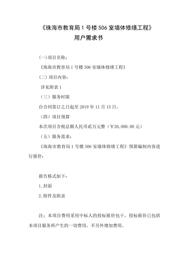 10.30-《珠海市教育局1号楼506室墙体修缮工程》用户需求书.doc