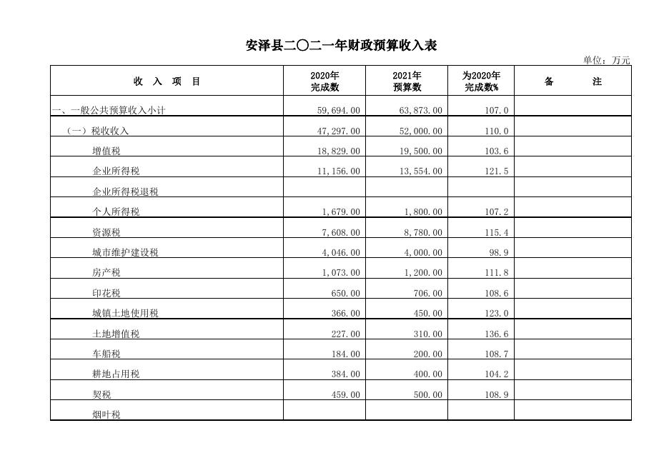 安泽县2021年财政预算.pdf