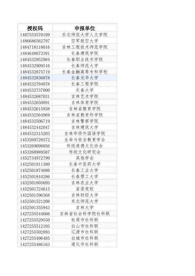 单位授权码公布.xls