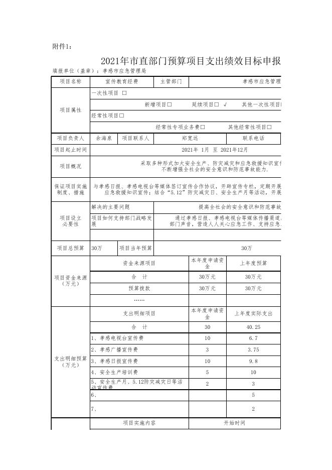 2021年市直部门预算项目支出绩效目标申报表—宣传教育经费.xls