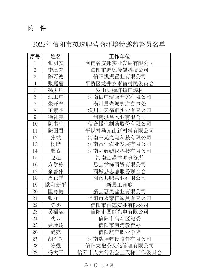 2022年信阳市拟选聘营商环境特邀监督员名单.xls