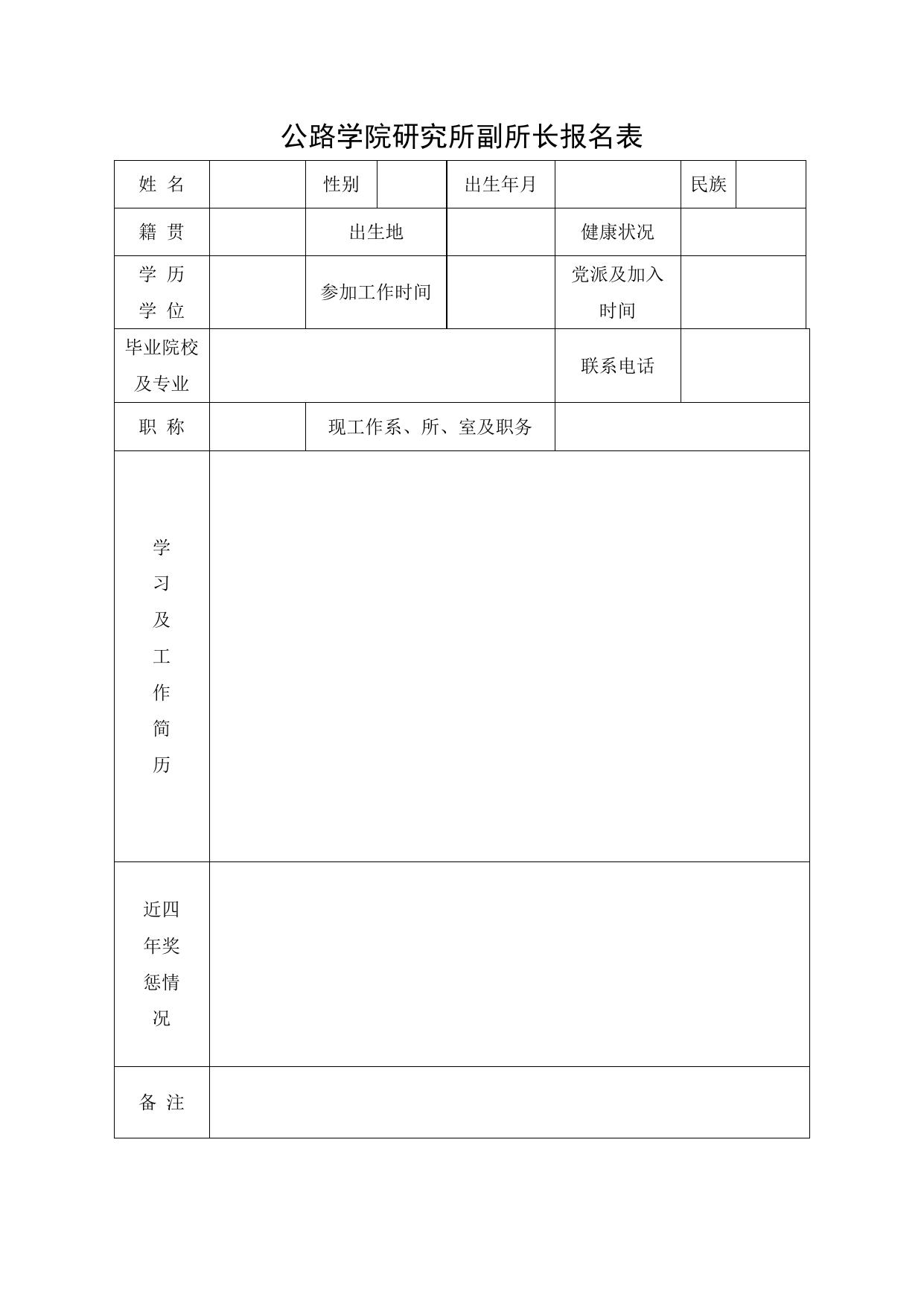 长安大学公路学院《公路学院研究所副所长报名表》.doc