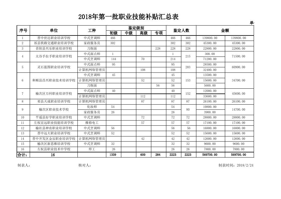 2018年第一批职业技能鉴定补贴汇总表(1).xlsx