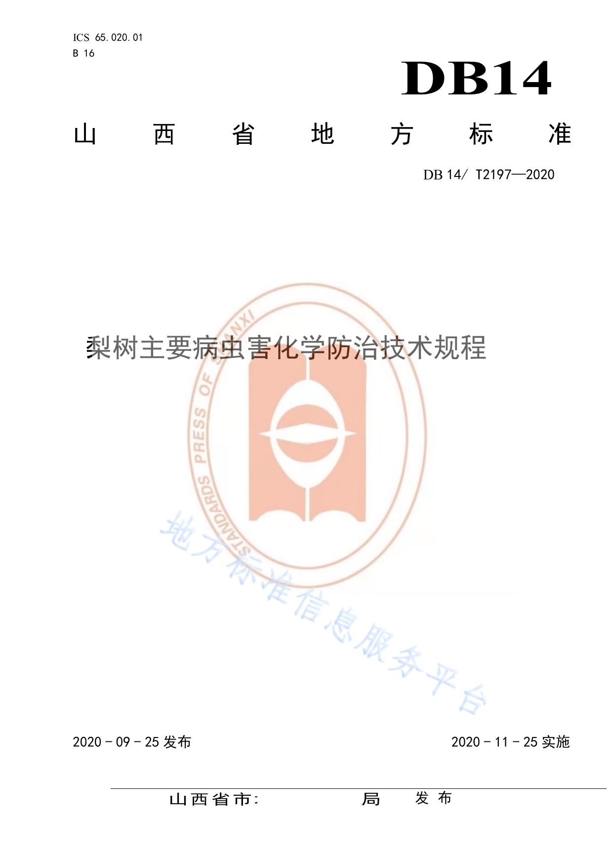 《梨树主要病虫害化学防治技术规程》