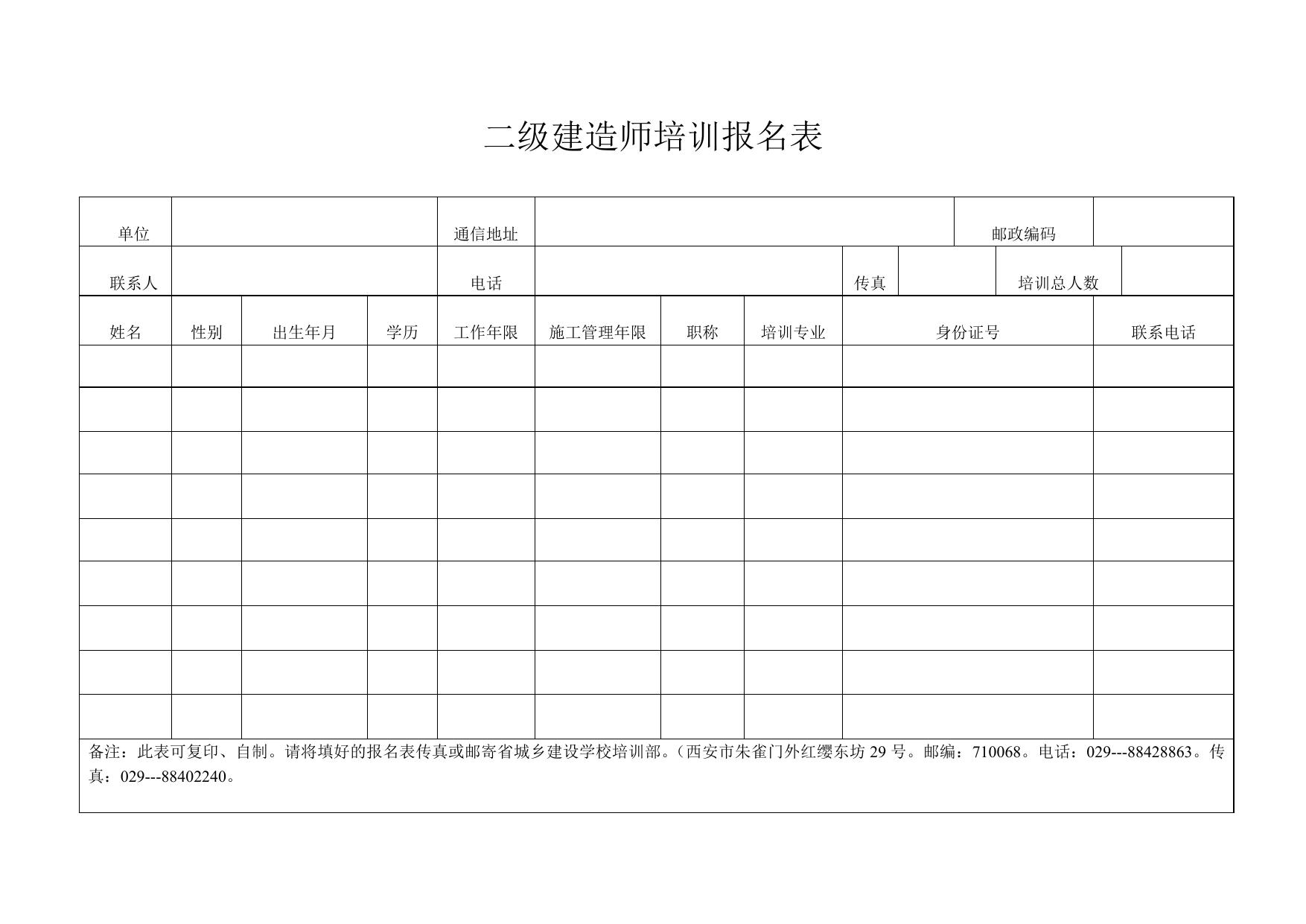 二级建造师培训报名表.doc