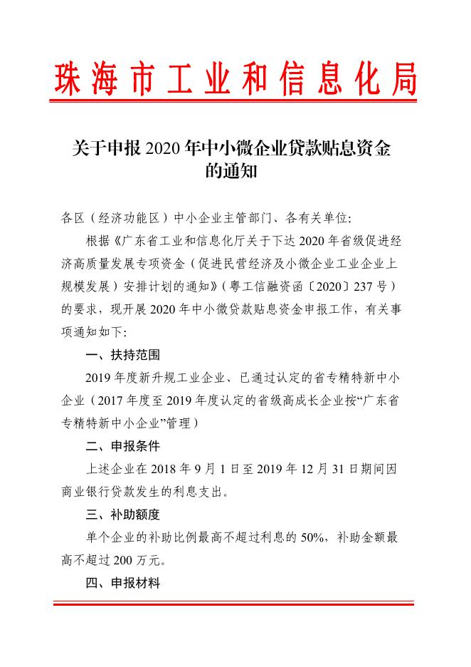 关于申报2020年中小微企业贷款贴息资金的通知.pdf