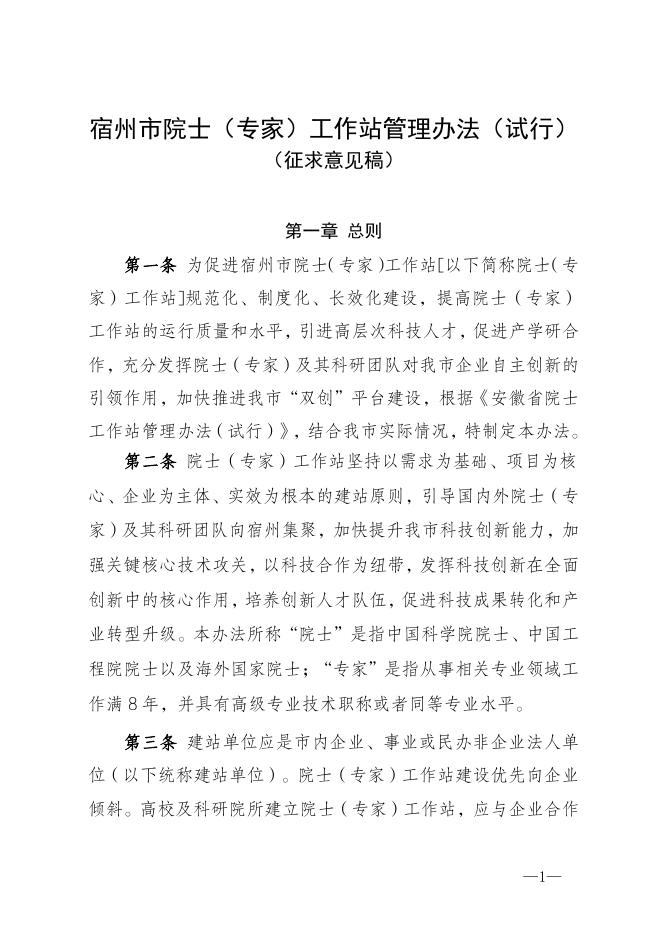 宿州市院士(专家)工作站管理办法(试行)(征求意见稿).pdf