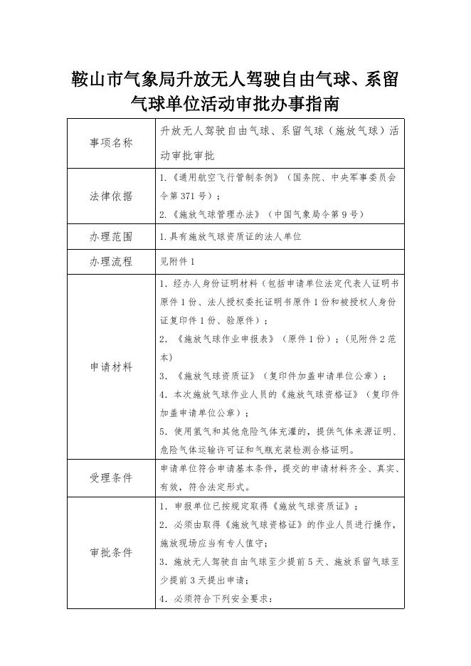 鞍山市气象局施放气球活动审批办事指南(含流程图和范本).doc