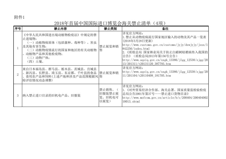 1.2018年首届中国国际进口博览会海关禁止清单(汇总20180607).xls