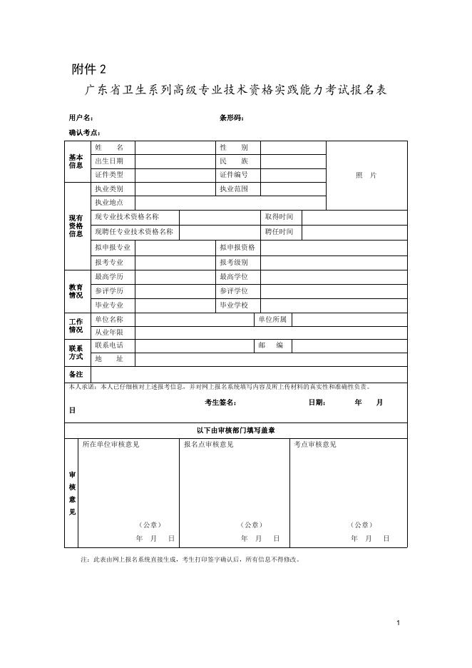 广东省卫生系列高级专业技术资格实践能力考试报名表.doc
