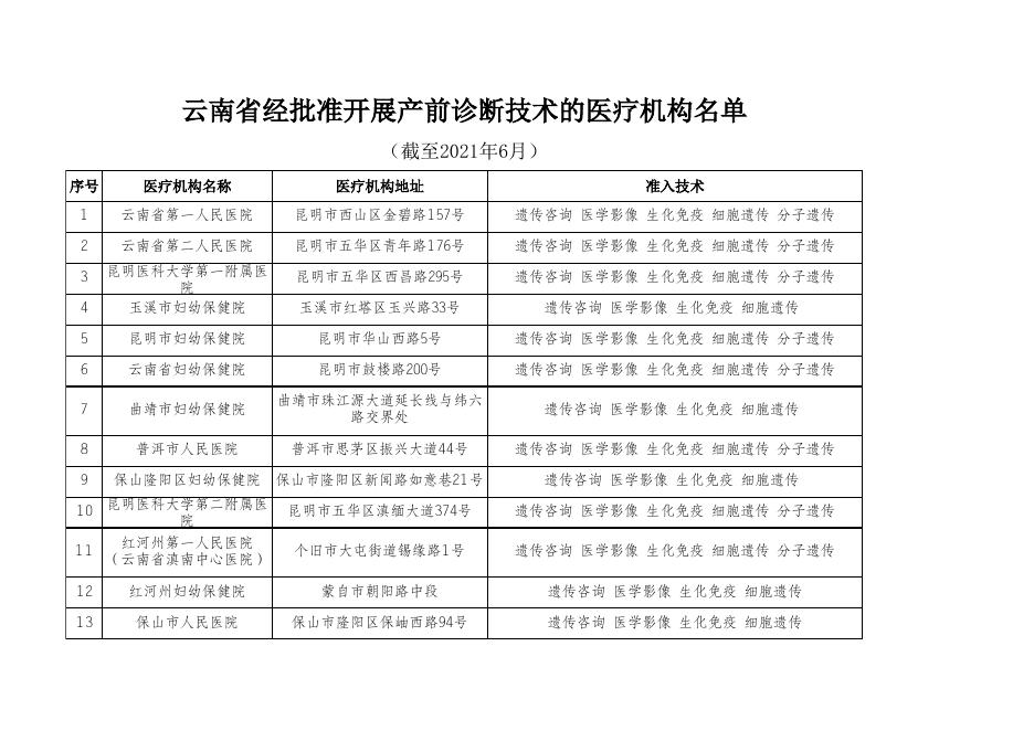 云南省经批准开展产前诊断技术的医疗机构名单.xls