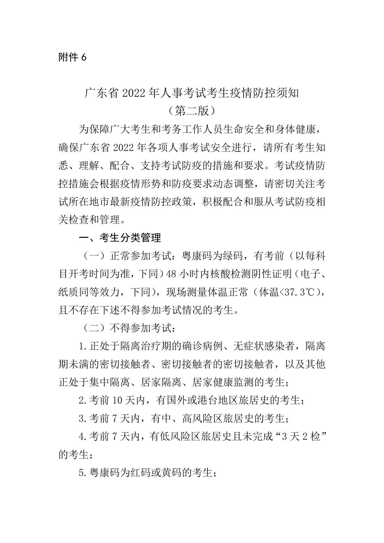 附件6-广东省2022年人事考试考生疫情防控须知(第二版).doc