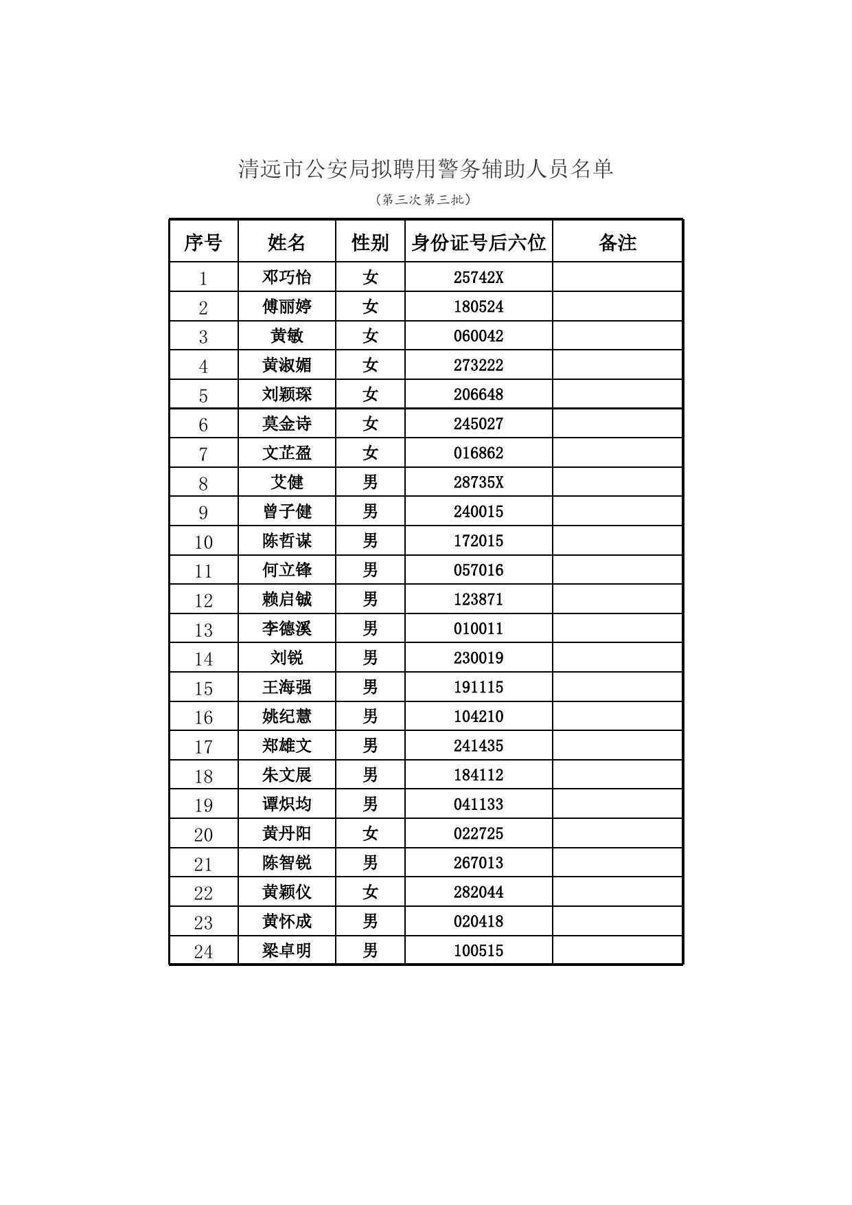 清远市公安局拟聘用警务辅助人员名单(第三次第三批).xlsx