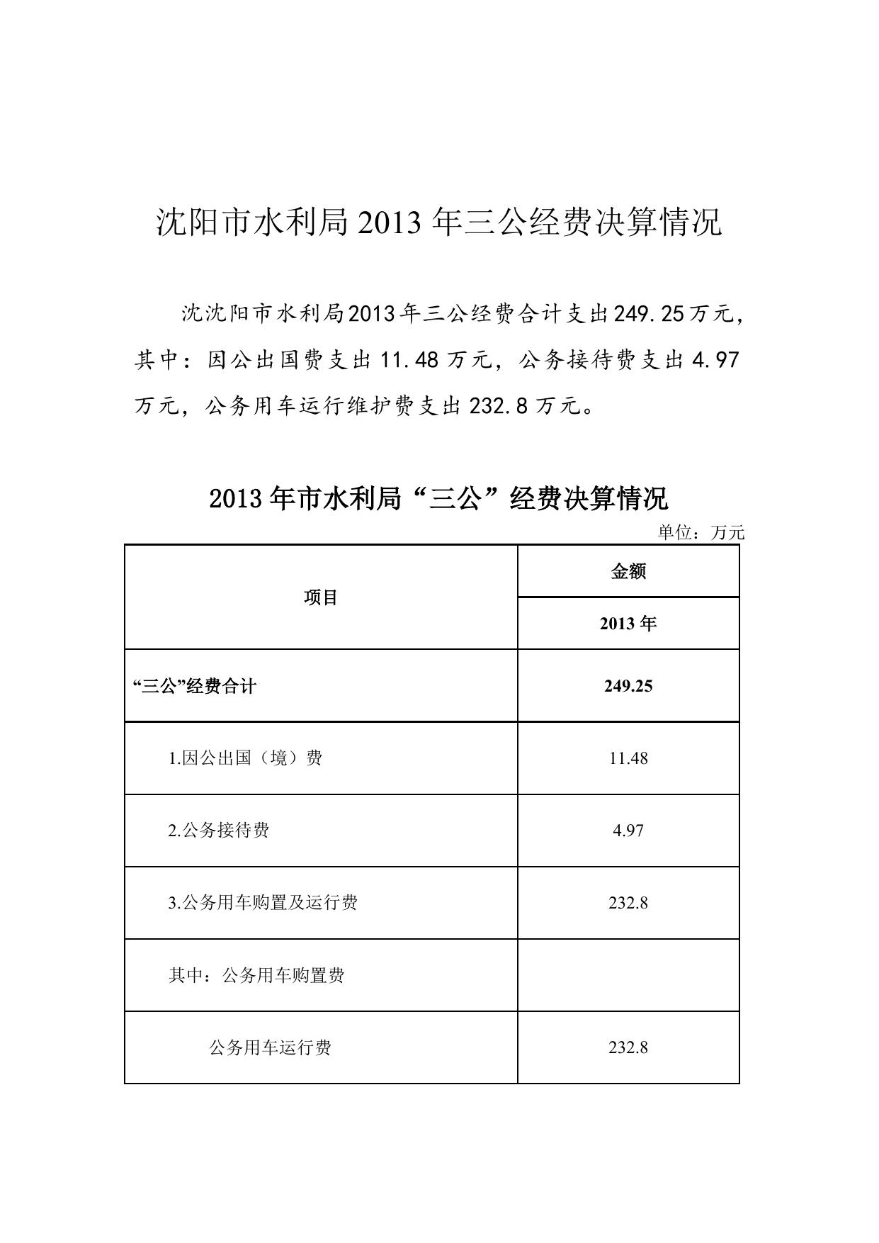 沈阳市水利局2013年三公经费决算.doc