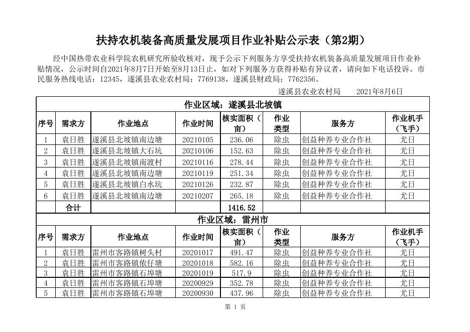 扶持农机装备高质量发展项目作业补贴公示(第2批).xls
