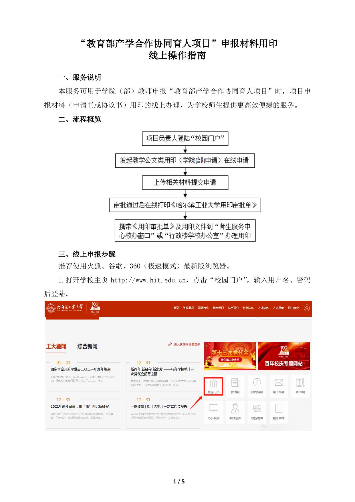 附件3:哈尔滨工业大学“教育部产学合作协同育人项目”申报材料用印线上操作指南.pdf