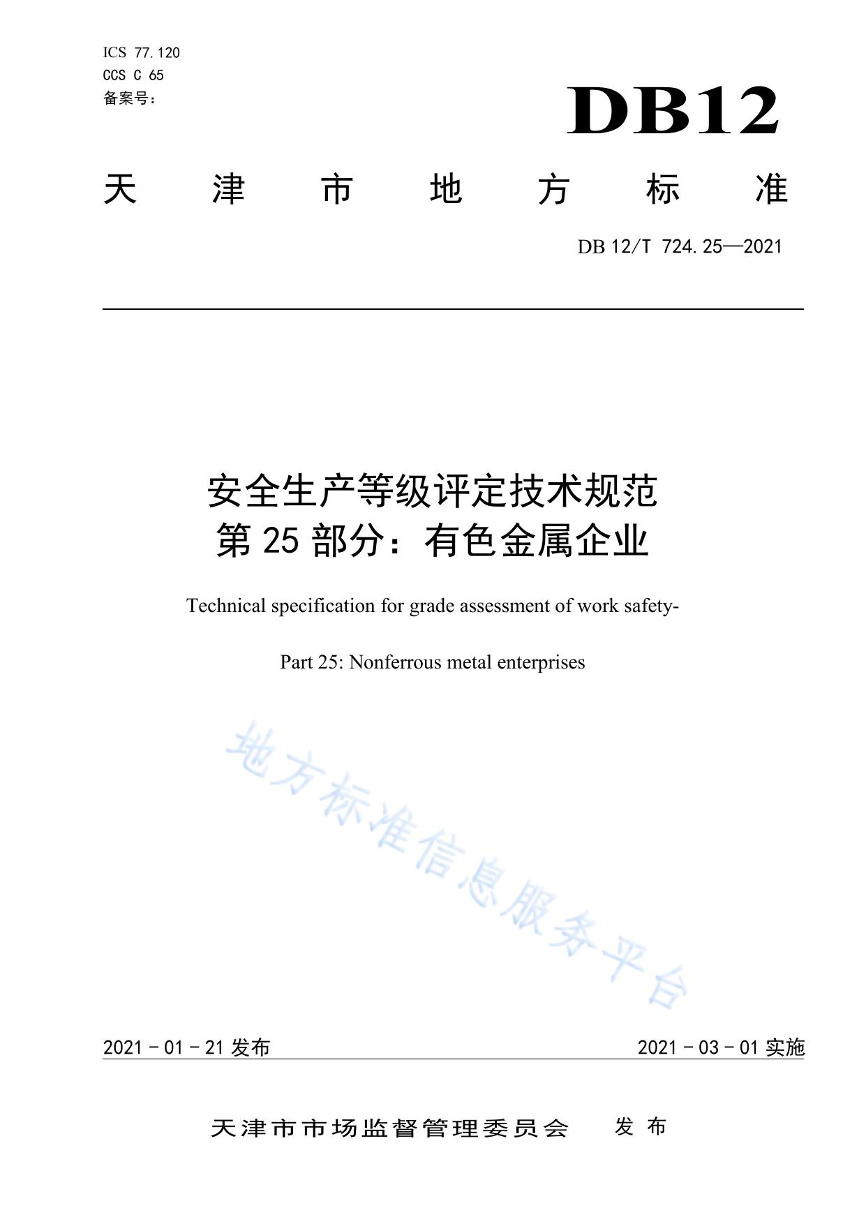 安全生产等级评定技术规范 第25部分:有色金属企业