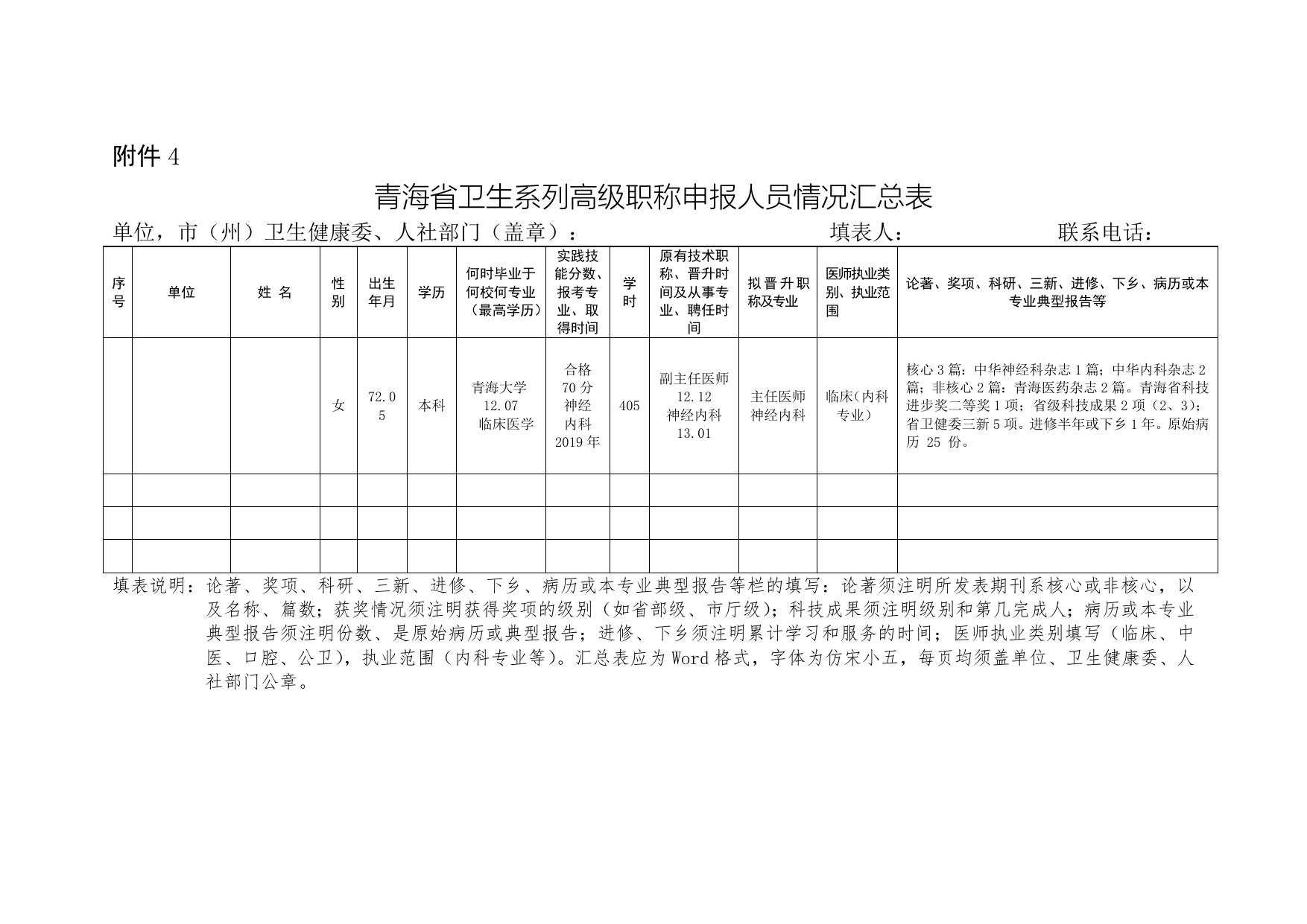 青海省卫生系列高级职称申报人员情况汇总表.doc