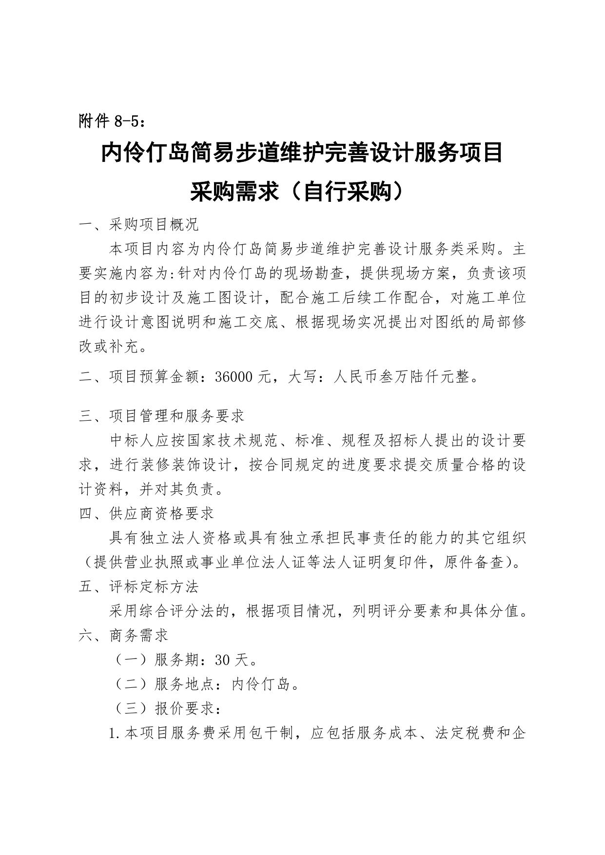内伶仃岛简易步道维护完善设计服务项目采购需求(自行采购).docx